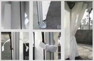 Todas as paredes laterais são fixadas com zíperes de alta resistência em cada bainha, proporcionando facilidade no uso do fechamento da parede lateral ao tubo do poste.